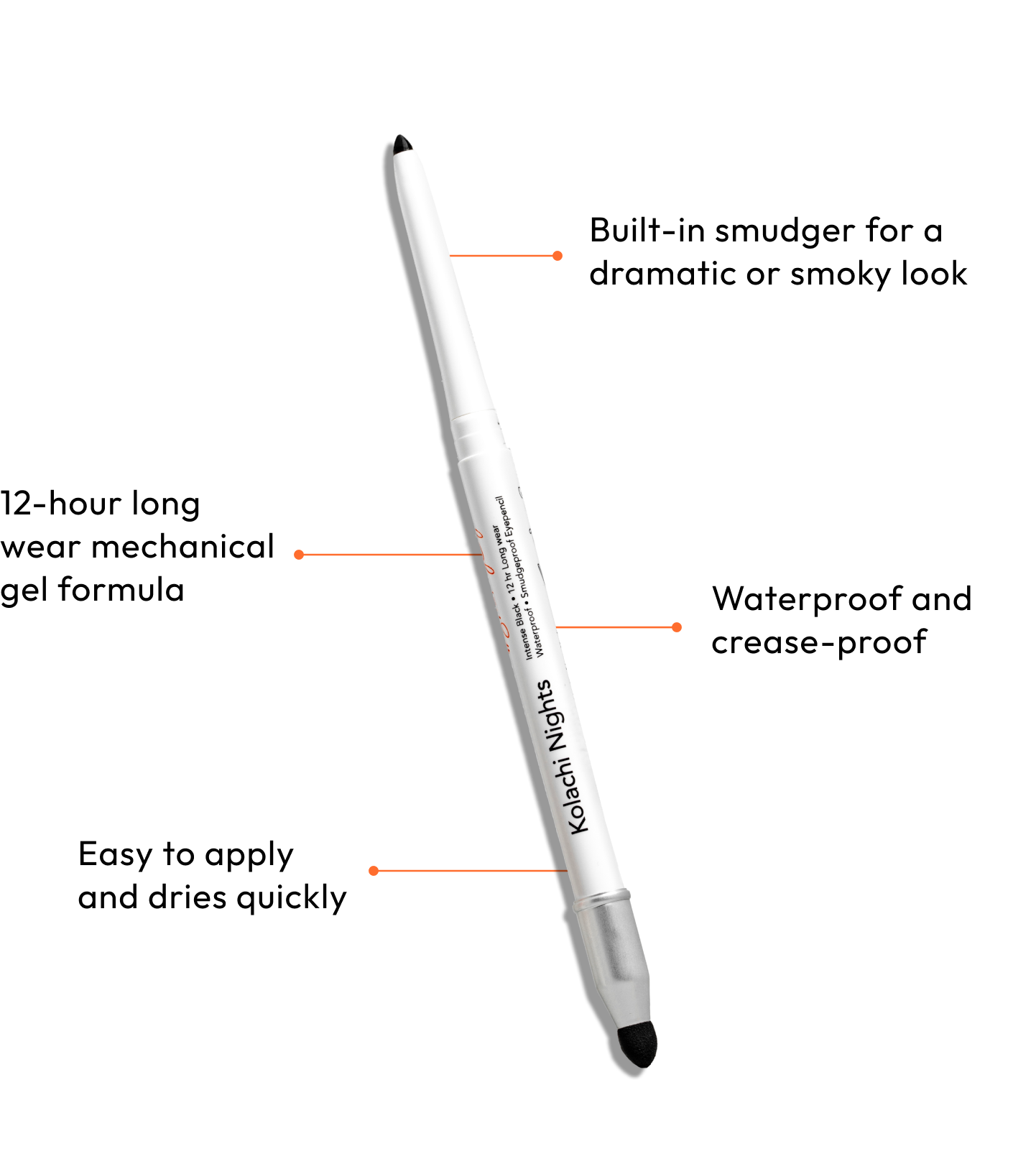 Inspired by traditional makeup used in South Asia called Kajal, Kolachi Nights Intense Gel Eyeliner in a deep black shade is your ultimate tool for long-lasting, waterproof, smudge-proof, stunning eye makeup for everyday wear.